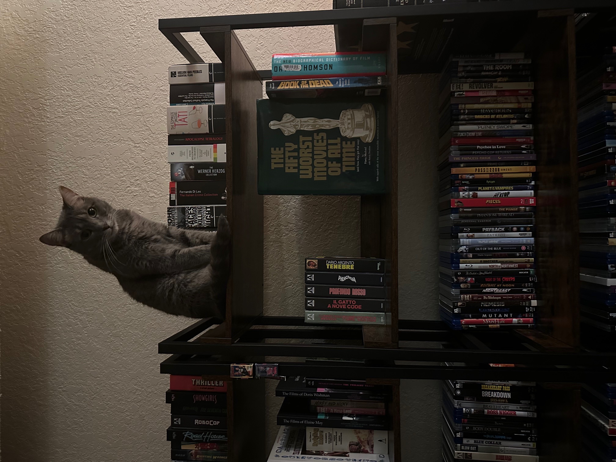 I have a huge physical media collection of a ~1500 films (blu ray). I spend lots of time reading industry screenplays, the blacklist etc... Working on my own and providing feedback for other contacts. I hangout with some film friends through online gaming. Playing piano badly.